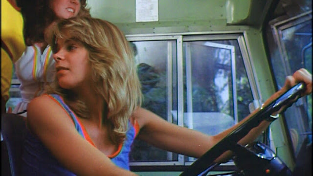 | Kristine DeBell caught inside a cabin with a group of other cheerleaders. |